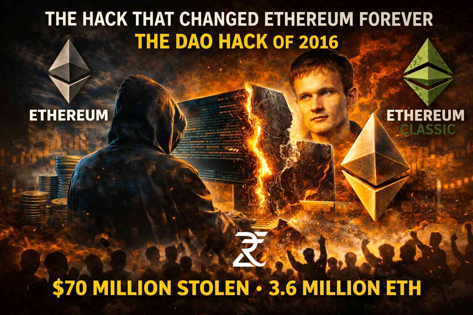 The Hack That Changed Ethereum Forever ♾️ In 2016, a single exploit reshaped the future of blockchain. A decentralized venture fund called *The DAO* had raised over $150 million in ETH, nearly 14% of the total supply at the time. It was one of the most ambitious experiments in decentralized governance. Then came the attack. A vulnerability in the smart contract allowed a hacker to repeatedly withdraw funds before balances updated, a classic reentrancy flaw. Over weeks, *3.6 million ETH* was drained, worth about $70 million at the time. The crisis split the Ethereum community. Vitalik Buterin and supporters pushed for a hard fork to recover funds and protect the network’s credibility. Decentralization purists opposed rewriting history. The hard fork moved forward. The result? The new chain became *Ethereum* The original chain continued as *Ethereum Classic* Blockchain governance entered a new era This event proved a critical truth: Code is powerful, but community consensus ultimately defines a network’s future. Today, The DAO hack remains one of the most important lessons in smart contract security, decentralization, and crisis management in Web3.